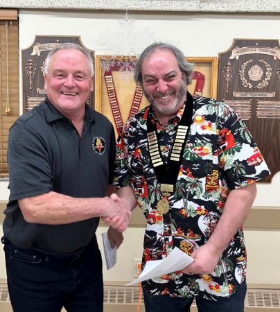 The Sackville Sports Heritage Hall of Fame Society is pleased to renew its ongoing gold partnership with the Sackville Kinsmen Club. Darrell Dempster, President of the Sackville Sports Heritage Hall of Fame Society accepts the donation from Todd North President of the Sackville Kinsmen.